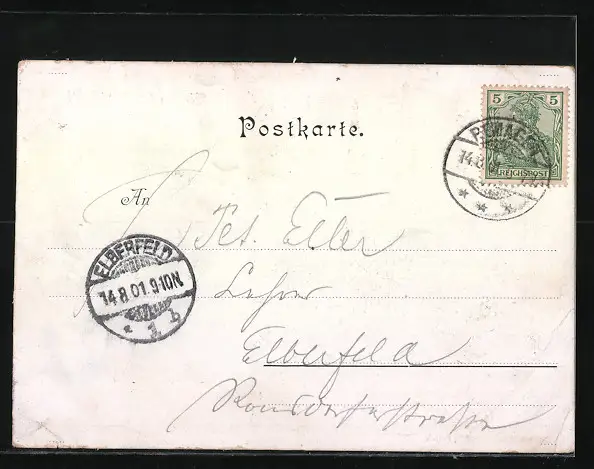 alte Ansichtskarte, gelaufen 1901, Eckknick oben li., Bugspuren Ecken unten, guter Zustand