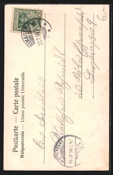 alte Ansichtskarte, gelaufen 1906, Eckknick unten links, guter Zustand