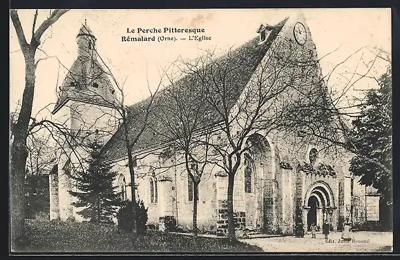 AK Rémalard, L`Église vue de face avec arbres sans feuilles