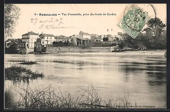 AK Remoulins, Vue d`ensemble, prise des bords du Gardon