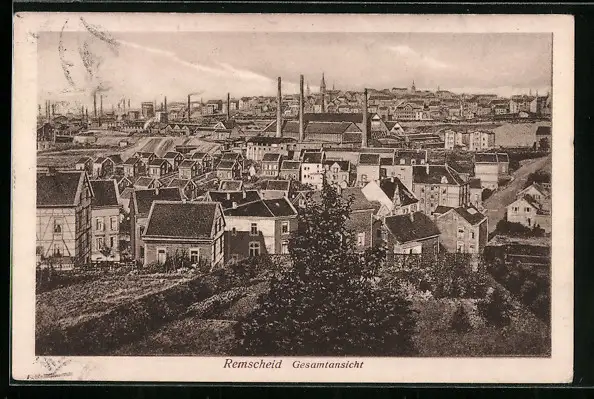 AK Remscheid, Gesamtansicht aus der Vogelschau