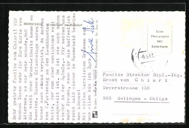alte Ansichtskarte, gelaufen 1963, Briefmarke entfernt, guter Zustand