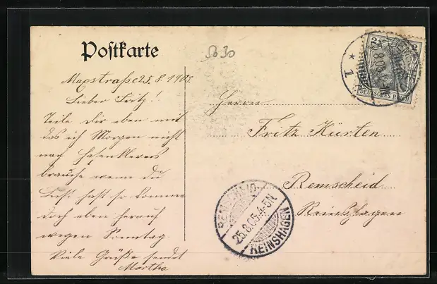 alte Ansichtskarte, gelaufen 1905, guter Zustand