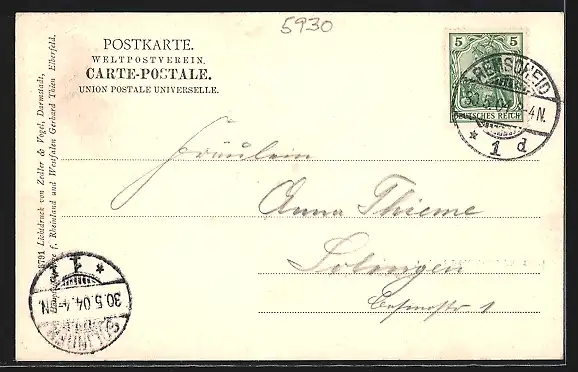 alte Ansichtskarte, gelaufen 1904, guter Zustand