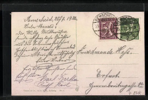 alte Ansichtskarte, gelaufen 1922, Ecken bestoßen, guter Zustand