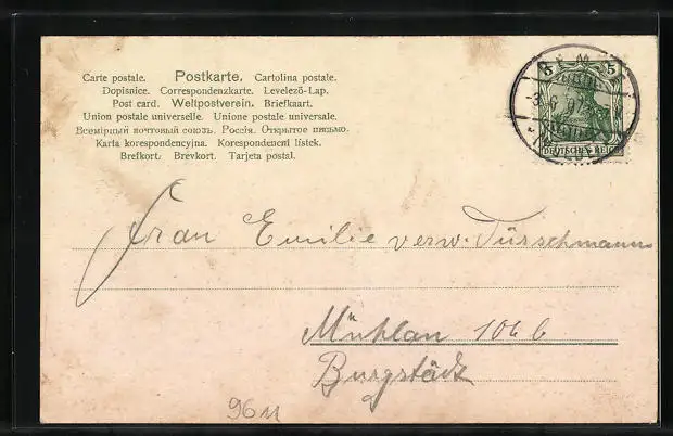 alte Ansichtskarte, gelaufen 1907, guter Zustand