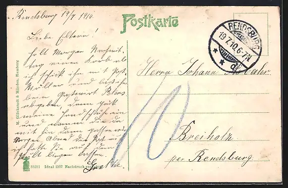 alte Ansichtskarte, gelaufen 1910, guter Zustand