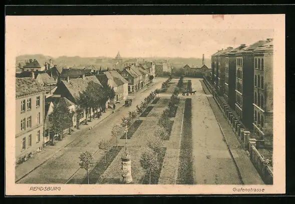 AK Rendsburg, Ansicht der Grafenstrasse, Litfassäule