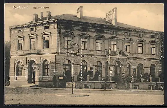 AK Rendsburg, Bahnhofshotel, Strassenansicht