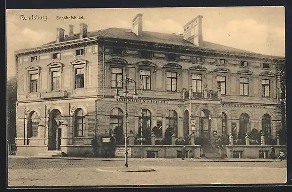 AK Rendsburg, Bahnhofshotel, Strassenansicht