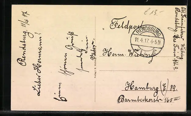 alte Ansichtskarte, gelaufen 1917 als Feldpost, guter Zustand