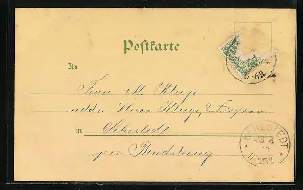 alte Ansichtskarte, gelaufen, Briefmarke entfernt, guter Zustand