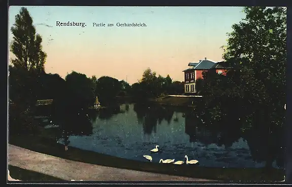AK Rendsburg, Gerhardsteich mit Schwänen