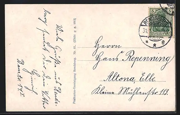 alte Ansichtskarte, gelaufen 1911, guter Zustand