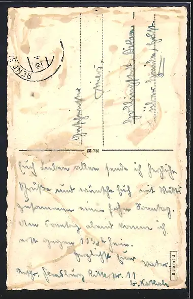 alte Ansichtskarte, gelaufen, Briefmarke entfernt, rückseitig Klebe- und Papierreste, Einriss mittig