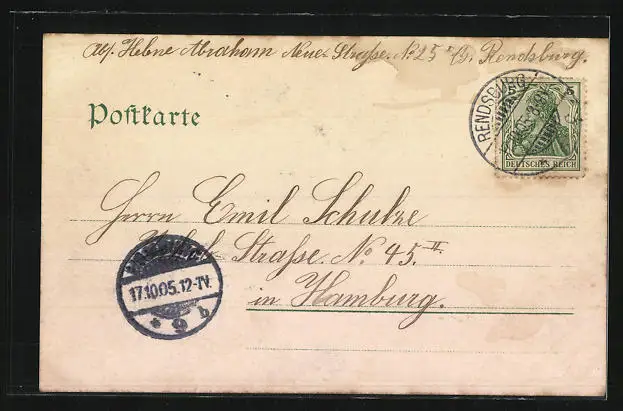 alte Ansichtskarte, gelaufen 1905, Stempelspur, guter Zustand
