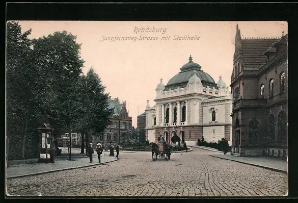 AK Rendsburg, Jungfernstieg-Strasse mit Stadthalle