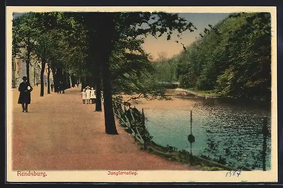 AK Rendsburg, Jungfernstieg mit Passanten und Kindern