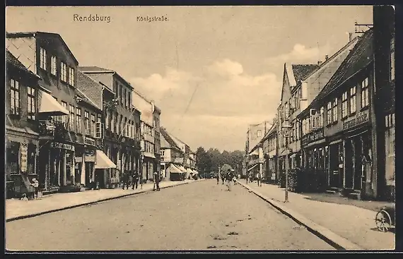 AK Rendsburg, Königstrasse mit Geschäften