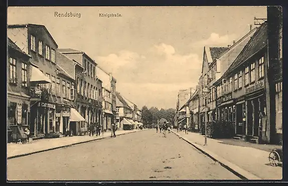 AK Rendsburg, Königstrasse mit Geschäften