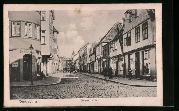AK Rendsburg, Löwenstrasse mit Geschäften