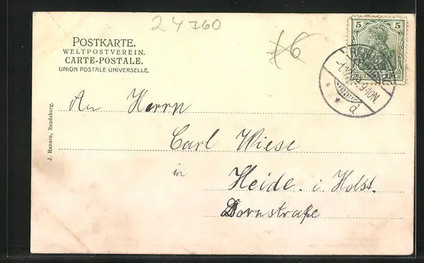 alte Ansichtskarte, gelaufen 1909, guter Zustand