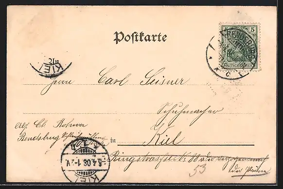 alte Ansichtskarte, gelaufen 1908, guter Zustand