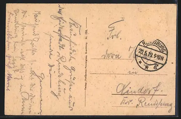 alte Ansichtskarte, gelaufen 1919, Briefmarke entfernt, guter Zustand