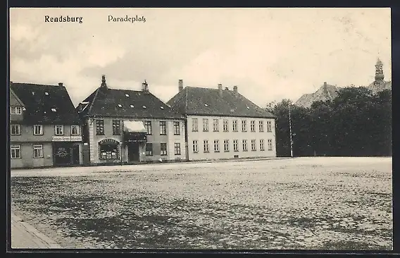 AK Rendsburg, Paradeplatz mit Konsum-Verein und Apotheke