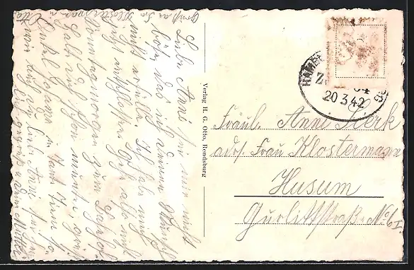 alte Ansichtskarte, gelaufen 1942, Briefmarke entfernt, Eckknick oben re., guter Zustand