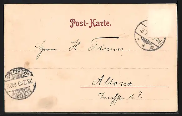 alte Ansichtskarte, gelaufen 1898, Briefmarke entfernt, rückseitig Oberflächenschaden, guter Zustand