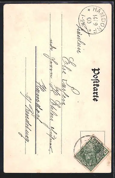 alte Ansichtskarte, gelaufen 1900, guter Zustand