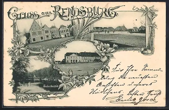 AK Rendsburg, Rathaus, Hauptwache, Paradeplatz