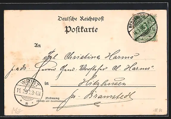 alte Ansichtskarte, gelaufen 1898, guter Zustand