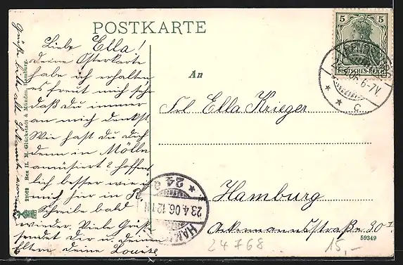 alte Ansichtskarte, gelaufen 1906, guter Zustand