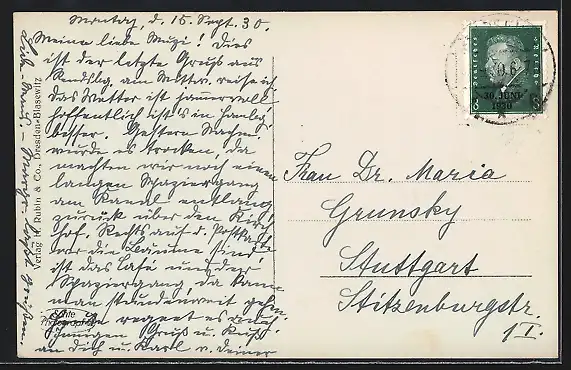 alte Ansichtskarte, gelaufen 1930, guter Zustand