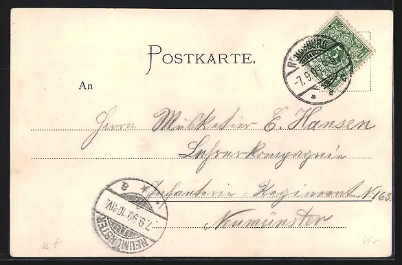 alte Ansichtskarte, gelaufen 1899, guter Zustand