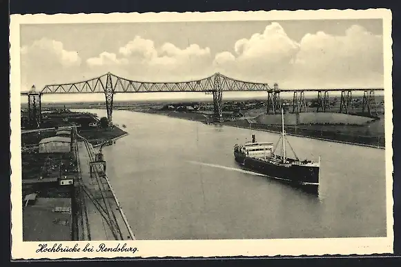 AK Rendsburg, Uferpartie mit Hochbrücke und Passagierdampfer