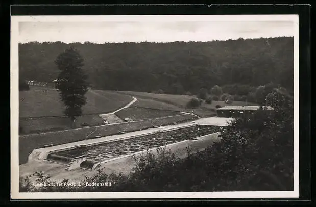 AK Rengsdorf, Badeanstalt aus der Vogelschau