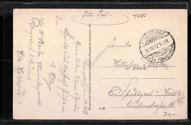 gelaufen 1917 als Feldpost, Stempelspur, guter Zustand