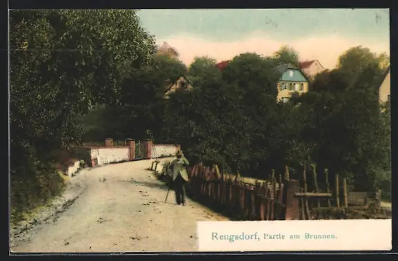 AK Rengsdorf, Strassenpartie am Brunnen mit Mann