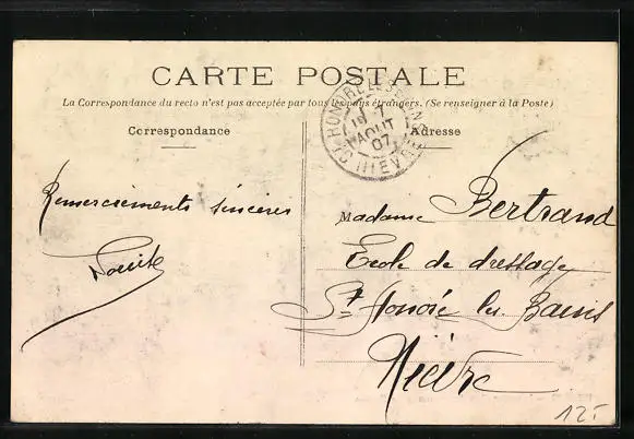 gelaufen 1907, Briefmarke entfernt, guter Zustand