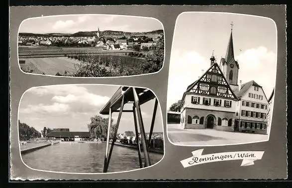 AK Renningen, Fachwerkhaus, Freibad und Panorama