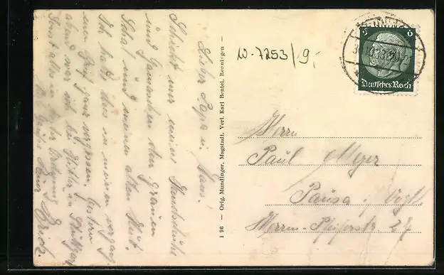 alte Ansichtskarte, gelaufen 1933, Eckknicke li., guter Zustand
