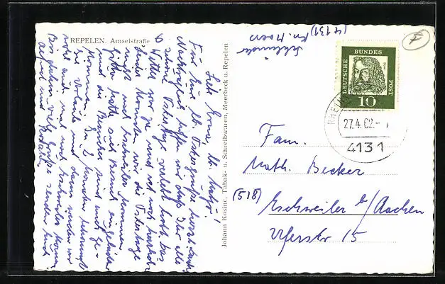 gelaufen 1962, Eckknick oben li., guter Zustand