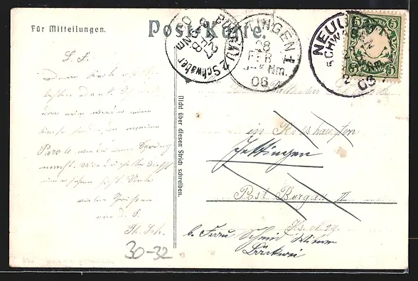 alte Ansichtskarte, gelaufen 1906, Einriss oberer Rand, guter Zustand
