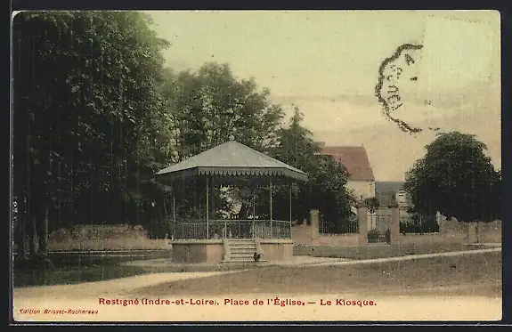 AK Restigné /I.-et-L., Place de l`Église, Le Klosque