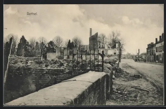 AK Rethel, Strassenpartie mit Kriegsruinen