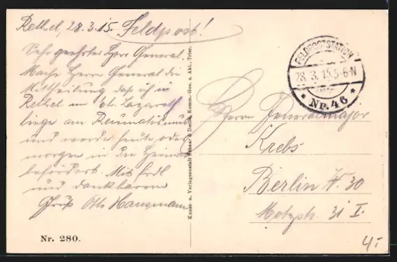 alte Ansichtskarte, gelaufen 1915, guter Zustand