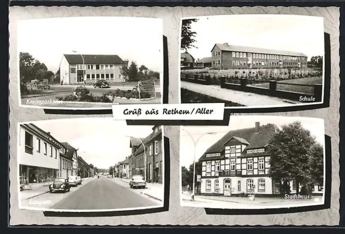 AK Rethem /Aller, Kreissparkasse, Schule, Langestrasse, Stadthaus